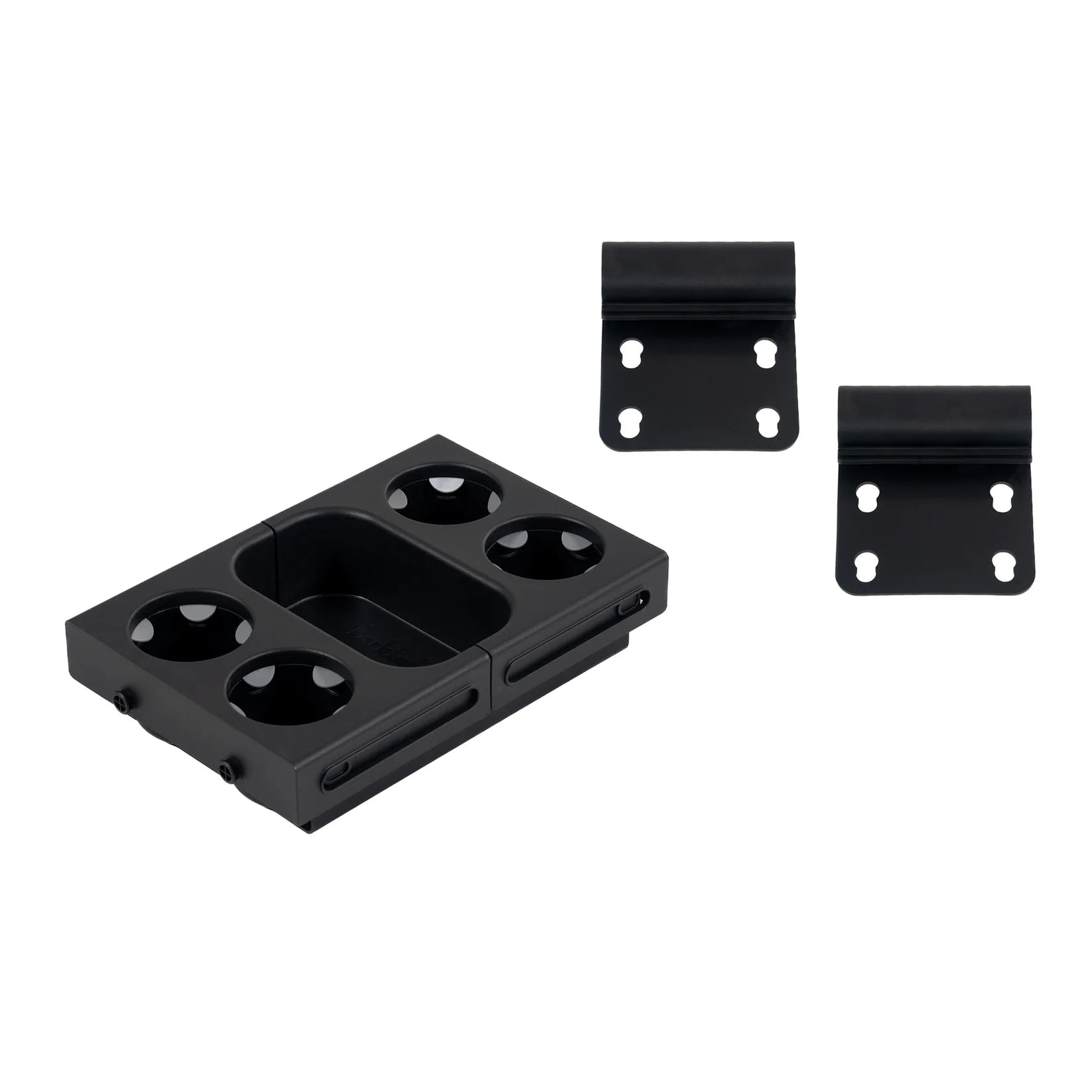 • Four cup holders with grip tabs keep beverages secure
