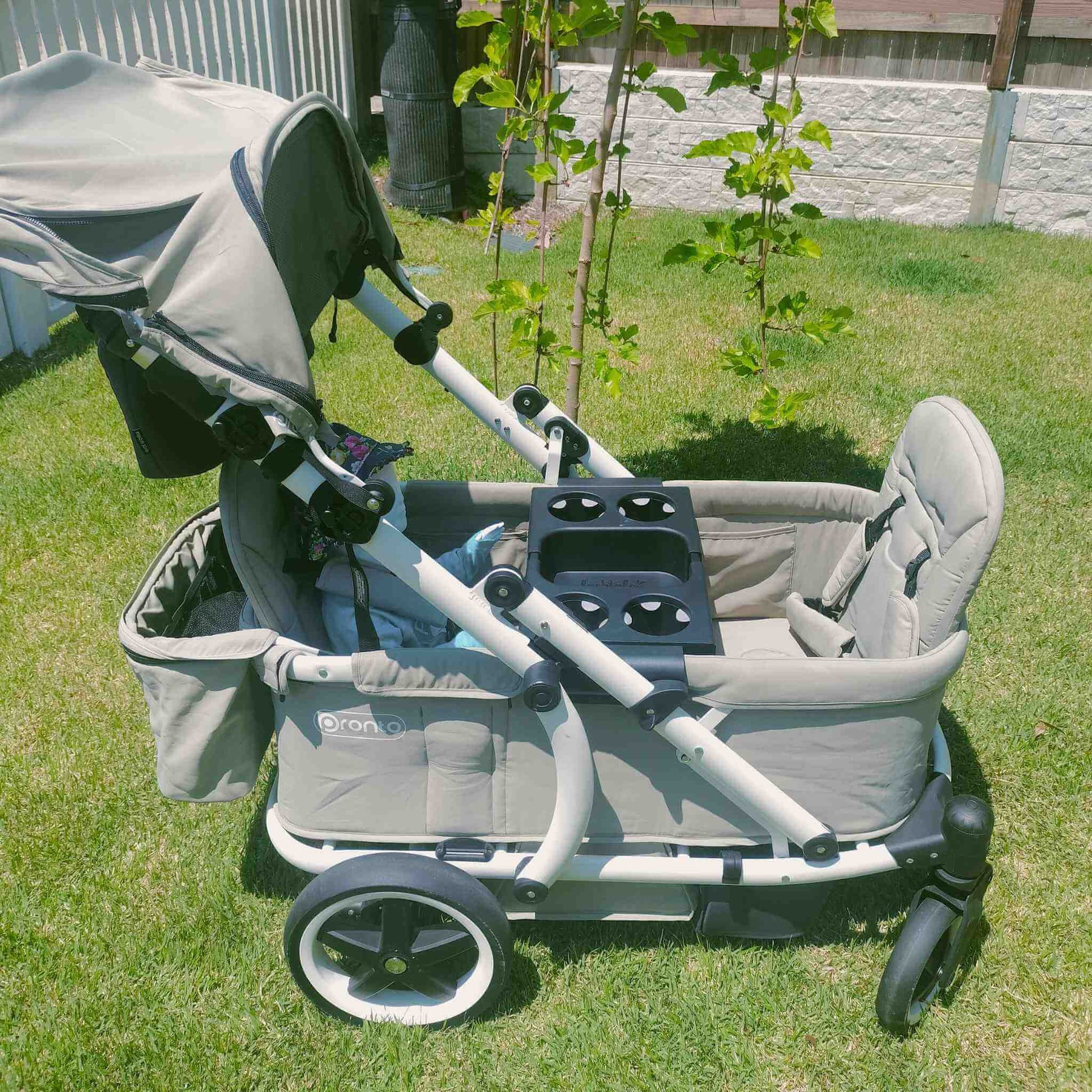• Tray expands to fit most four-seater quad strollers/wagons