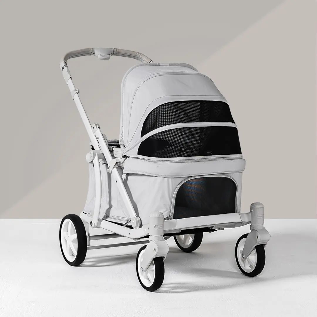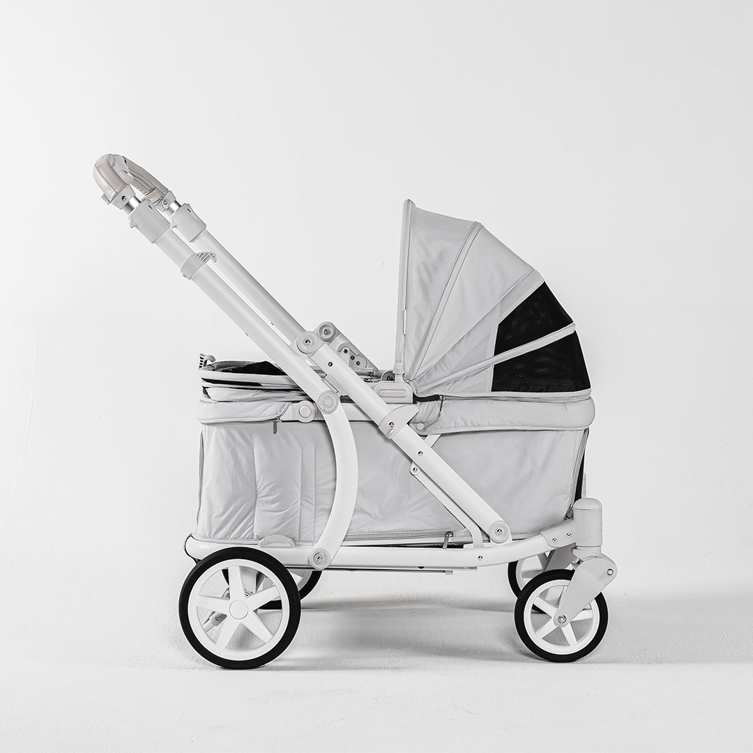 Weighing at 16.30 kilograms, our weight class is consistent with other comparable full-size, traditional twin prams and significantly lighter than comparable wagons.