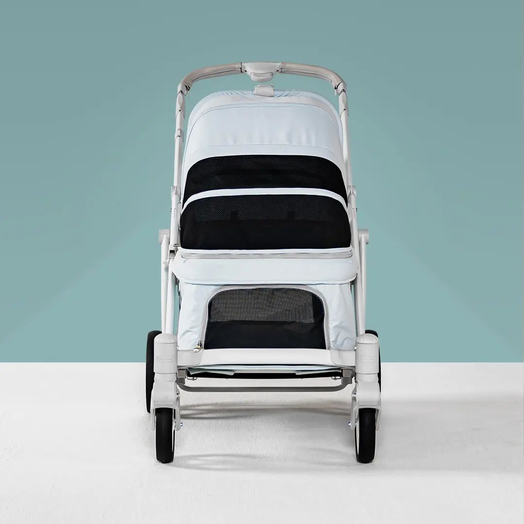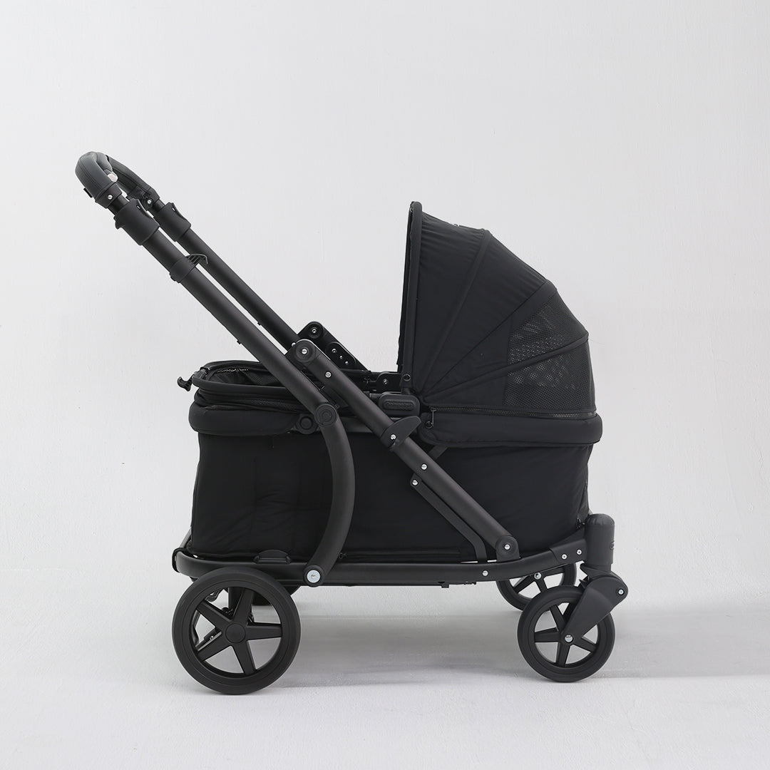 Auto-lock folding mechanism that swiftly collapses the wagon, including the canopy, allowing for effortless storage or transportation in its compact fold