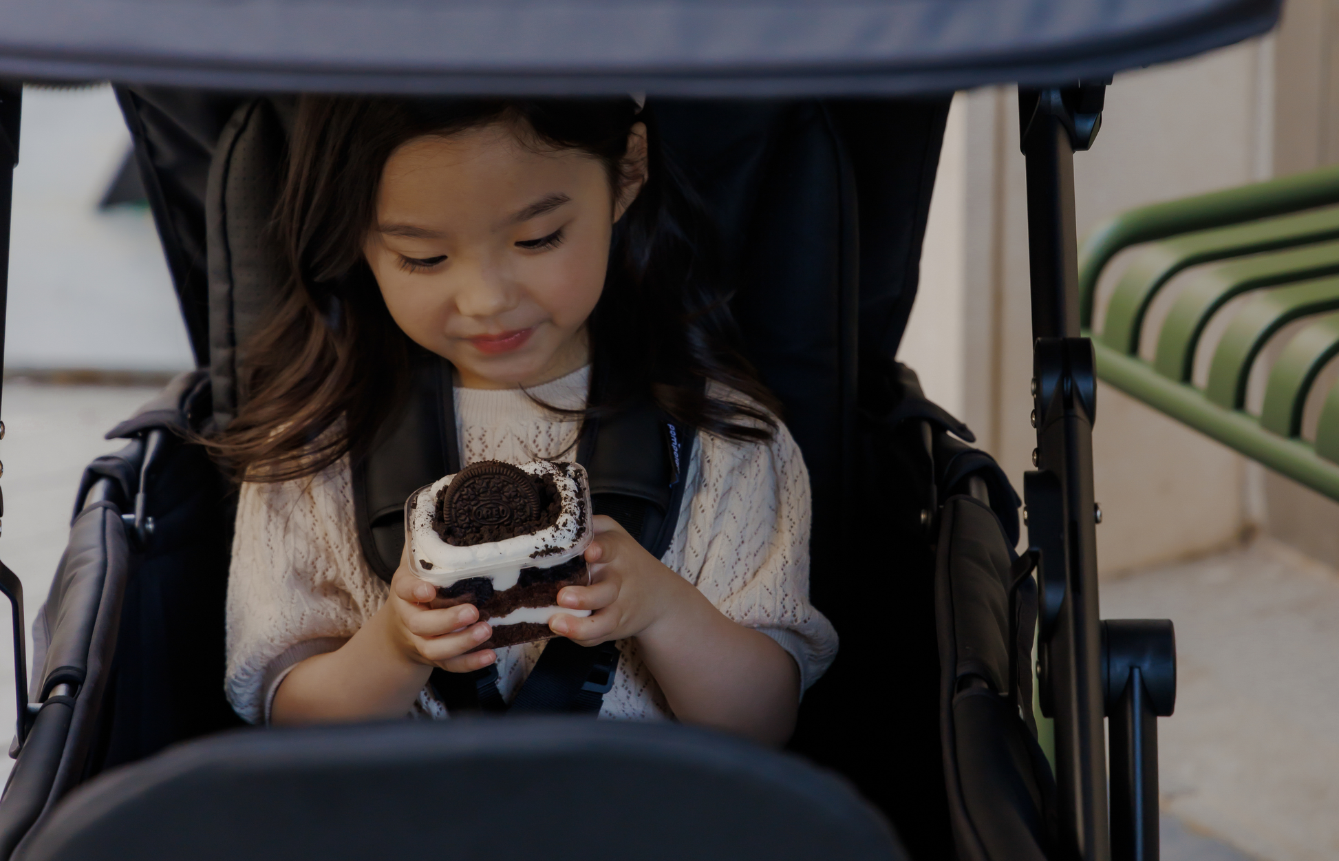 They love munching on snacks at the built-in table in the middle. And because they're little, they sometimes prefer sitting side by side, watching their favorite show, creating space on the other side for whatever daily adventure we're on. Pronto, you've made our outings a breeze and filled with joy.