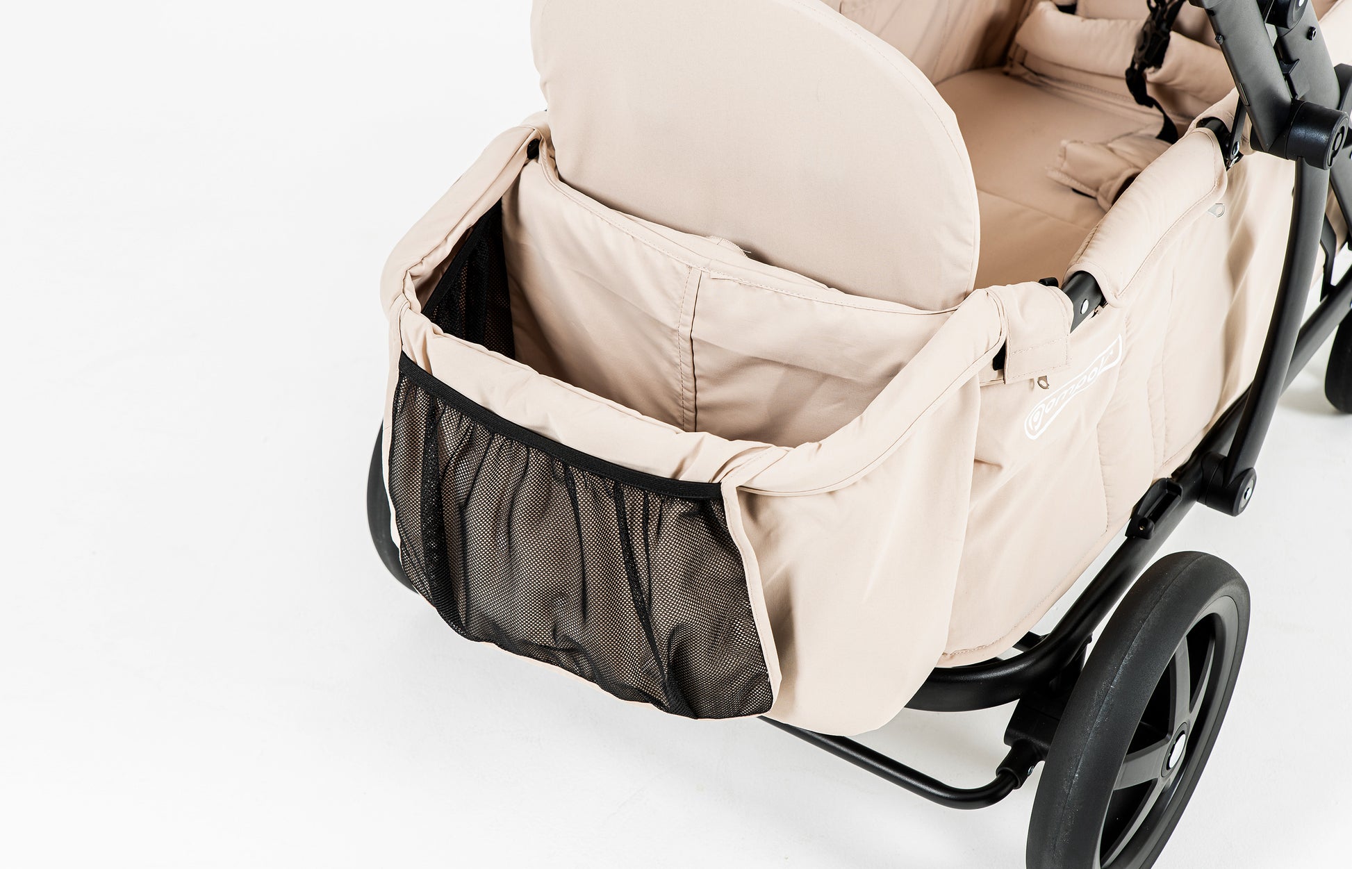 Weighing at 16.30 kilograms, our weight class is consistent with other comparable full-size, traditional twin prams and significantly lighter than comparable wagons.