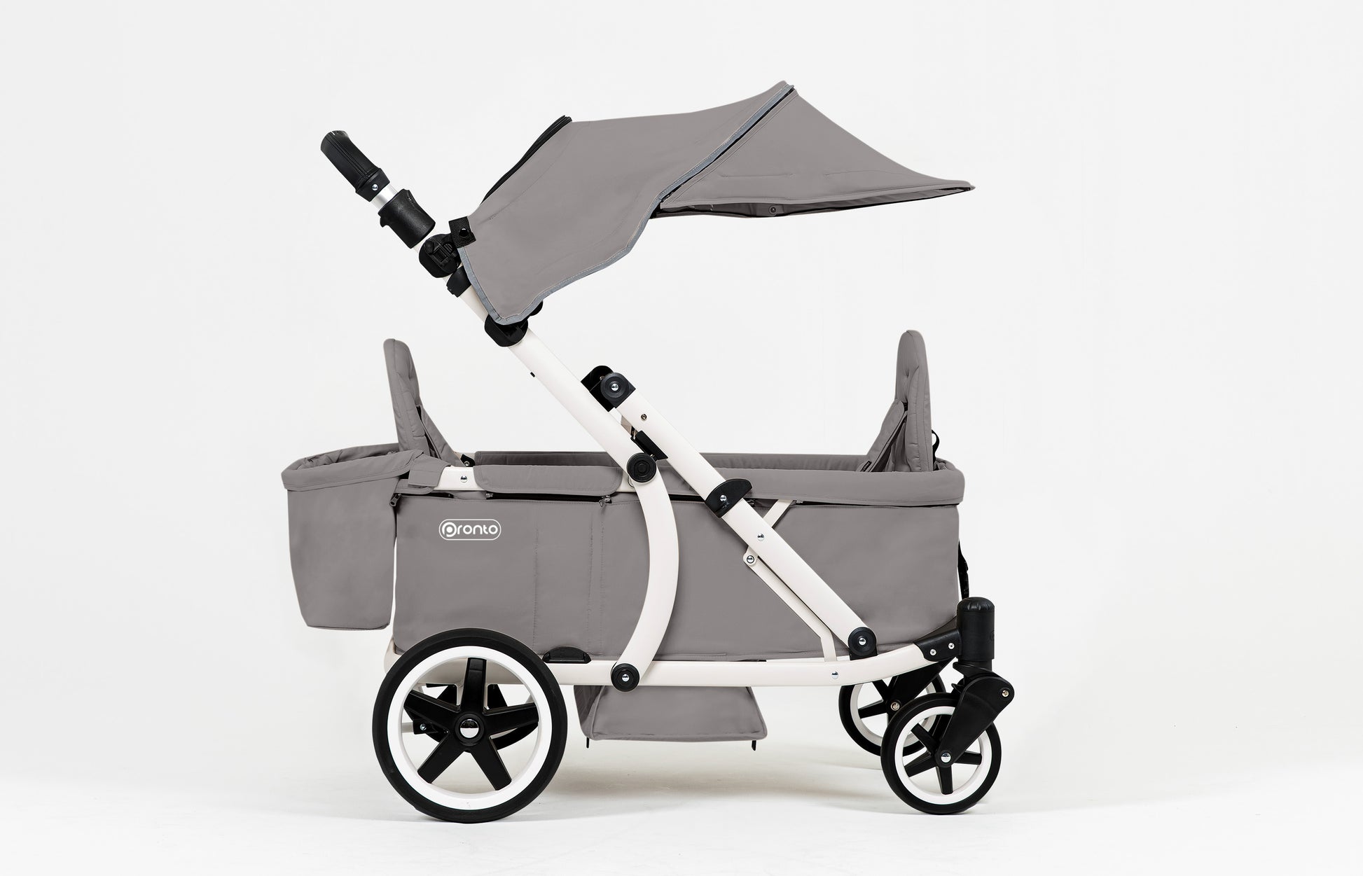 Designed with both parents and children in mind, Pronto provides the ultimate support for your little ones at every stage of life. The ergonomic 90-degree toddler seats ensure that your children sit comfortably and securely, promoting proper posture during every ride. The built-in bassinet and adjustable footwell add layers of adaptability, allowing you to customise the pram as your children grow, ensuring they enjoy the ride in perfect comfort.