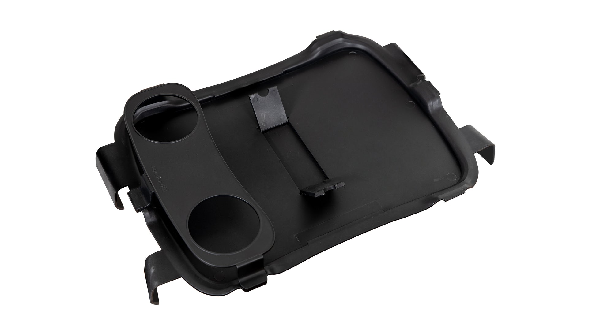 Our durable, wipe clean tray is made for snack and play. Easily removable, it includes an expandable cup and tablet holder to keep your passengers entertained on their ride.